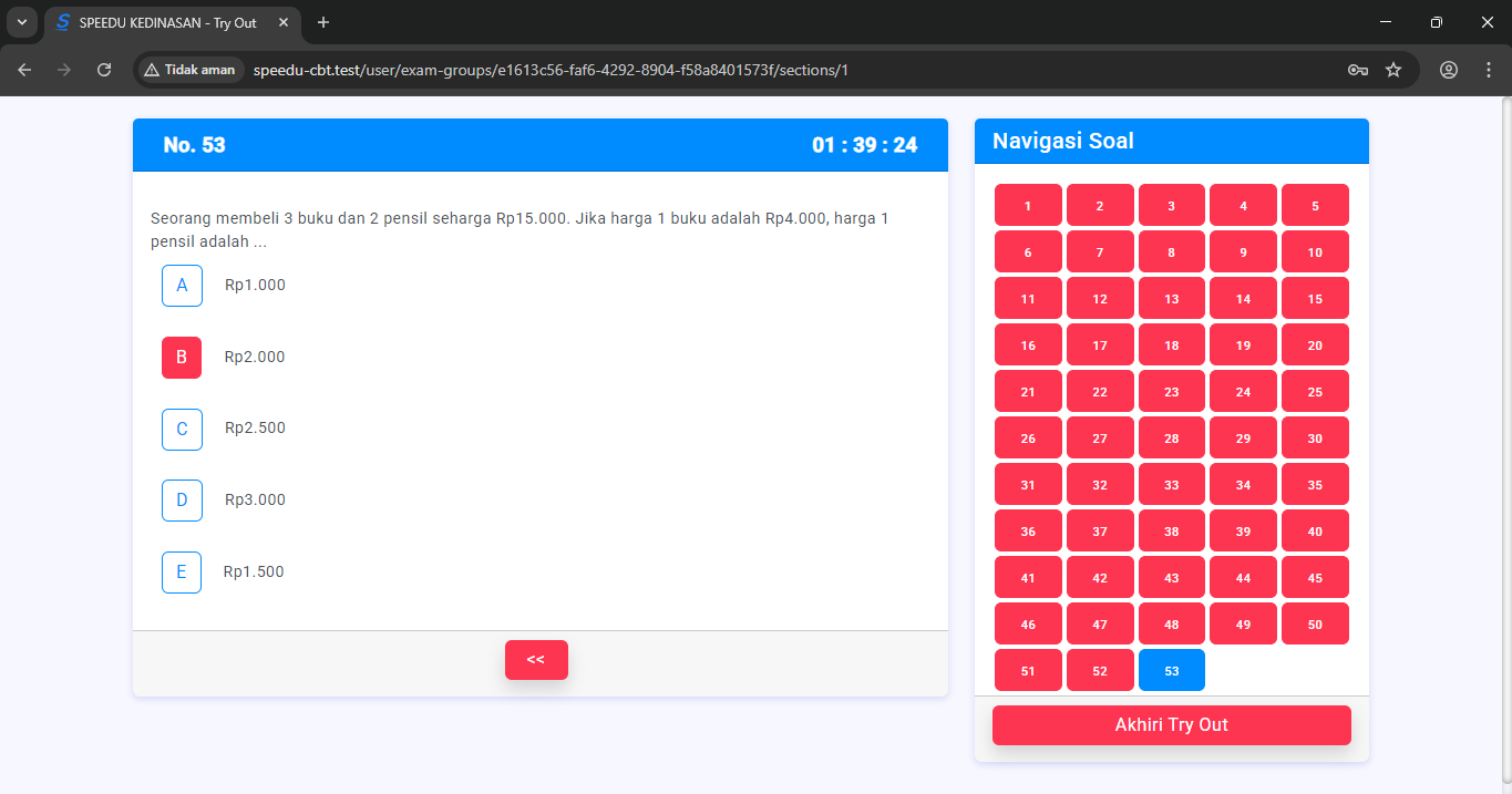 Persiapkan dirimu dengan sistem latihan CAT terbaik. Ribuan soal terupdate, pembahasan lengkap, dan simulasi ujian yang mirip dengan aslinya.